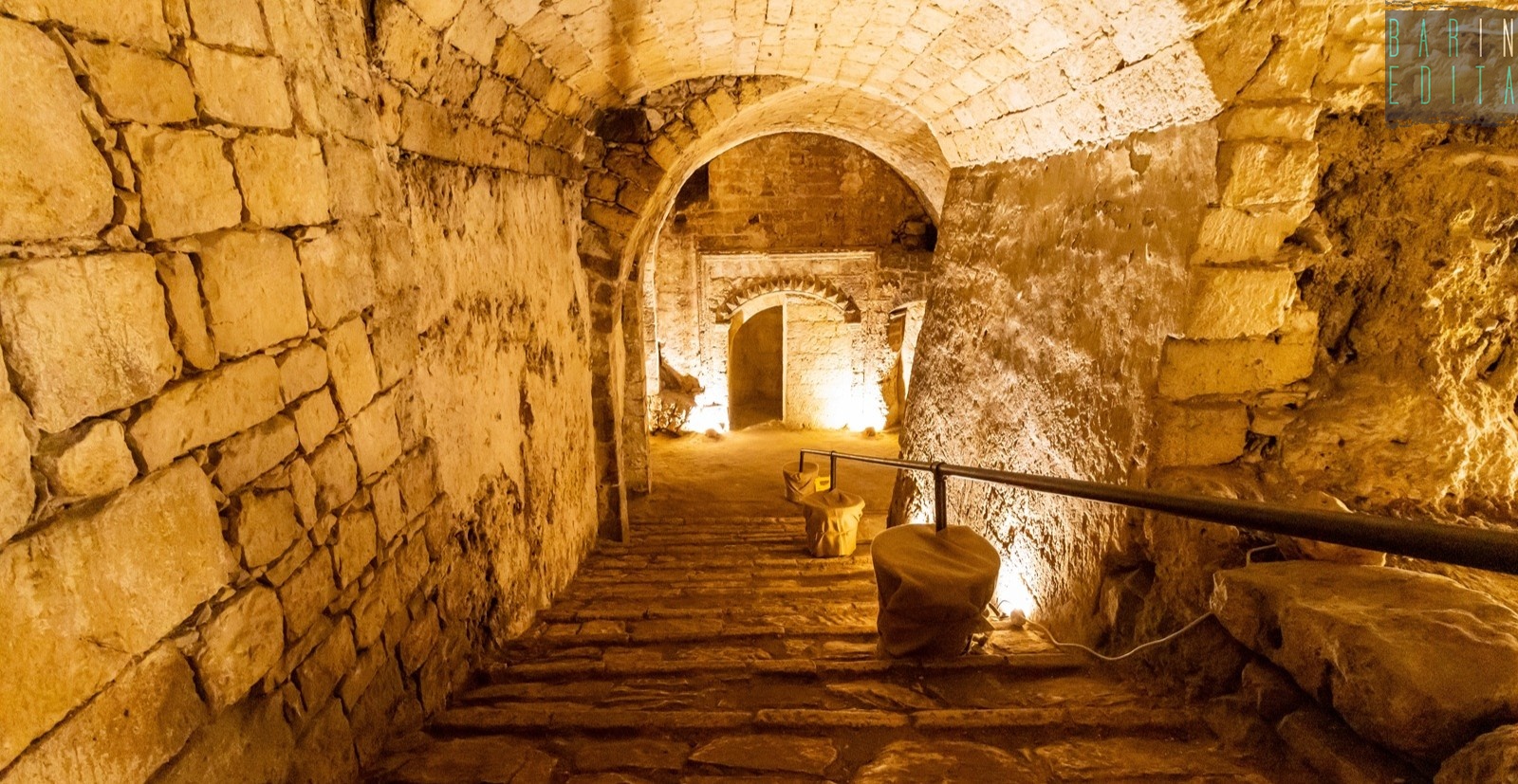 Per raggiungere le gallerie scendiamo delle scoscese rampe con dei cordoli in pietra orizzontali, realizzate in questo modo per permettere anche agli animali da soma di percorrerle senza scivolare. I gradoni ci conducono a 6 metri di profondità in un ambiente scavato nella roccia calcerenitica, con al centro un sontuoso arco finemente decorato che ci lascia incantati.Notizia di proprietà della testata giornalistica © Barinedita (vietata la riproduzione)
